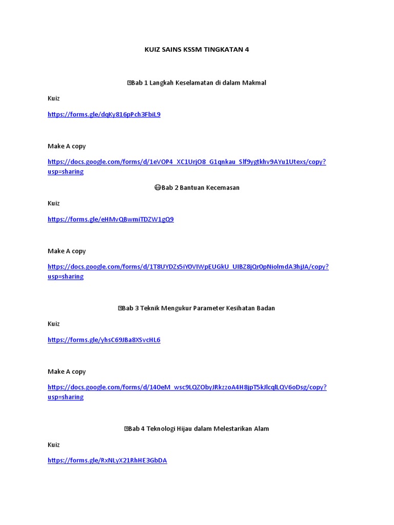 Tingkatan 4 Sains Kuiz Kssm Sumber Pengajaran